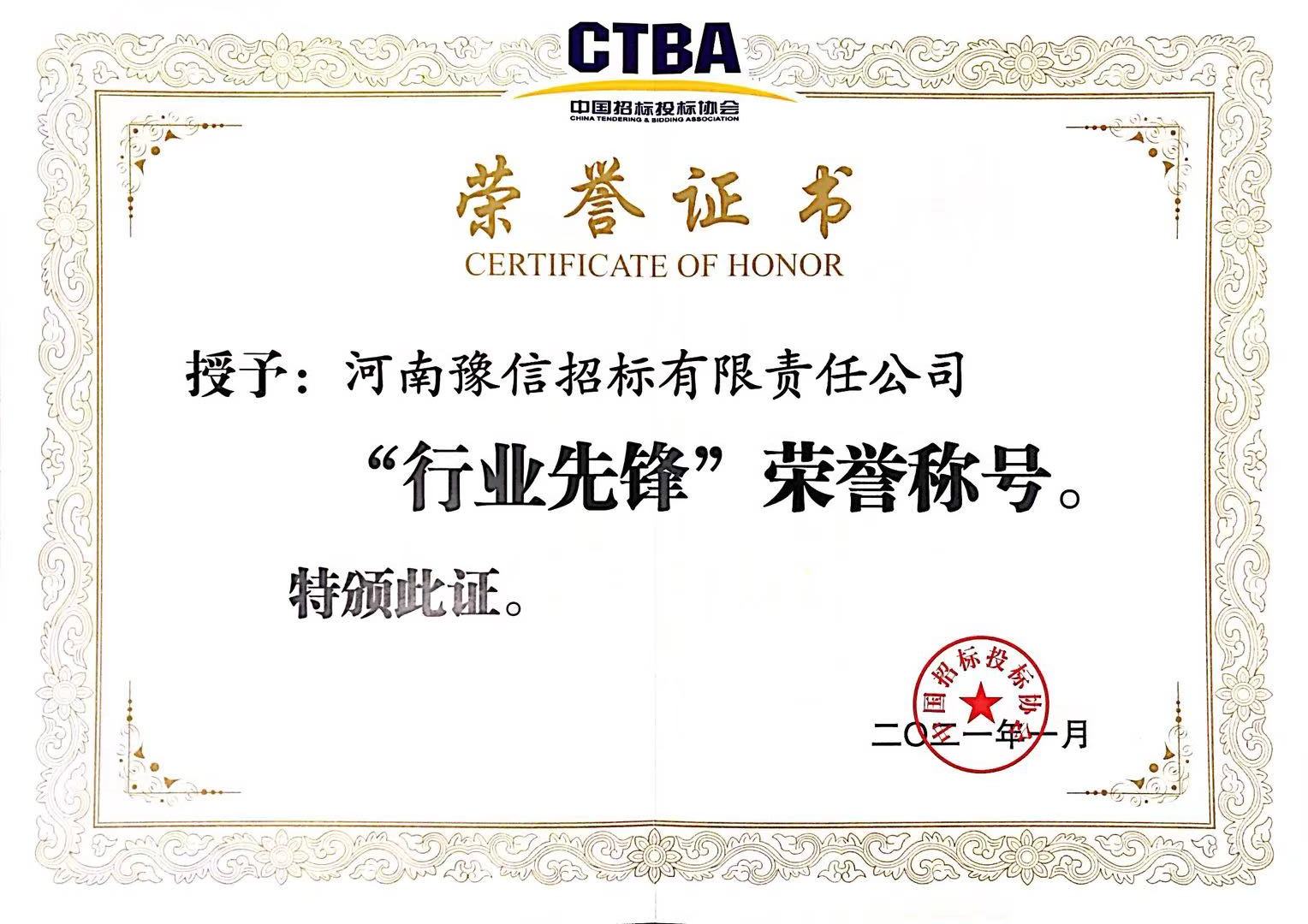 “行業(yè)先鋒”榮譽(yù)證書 -