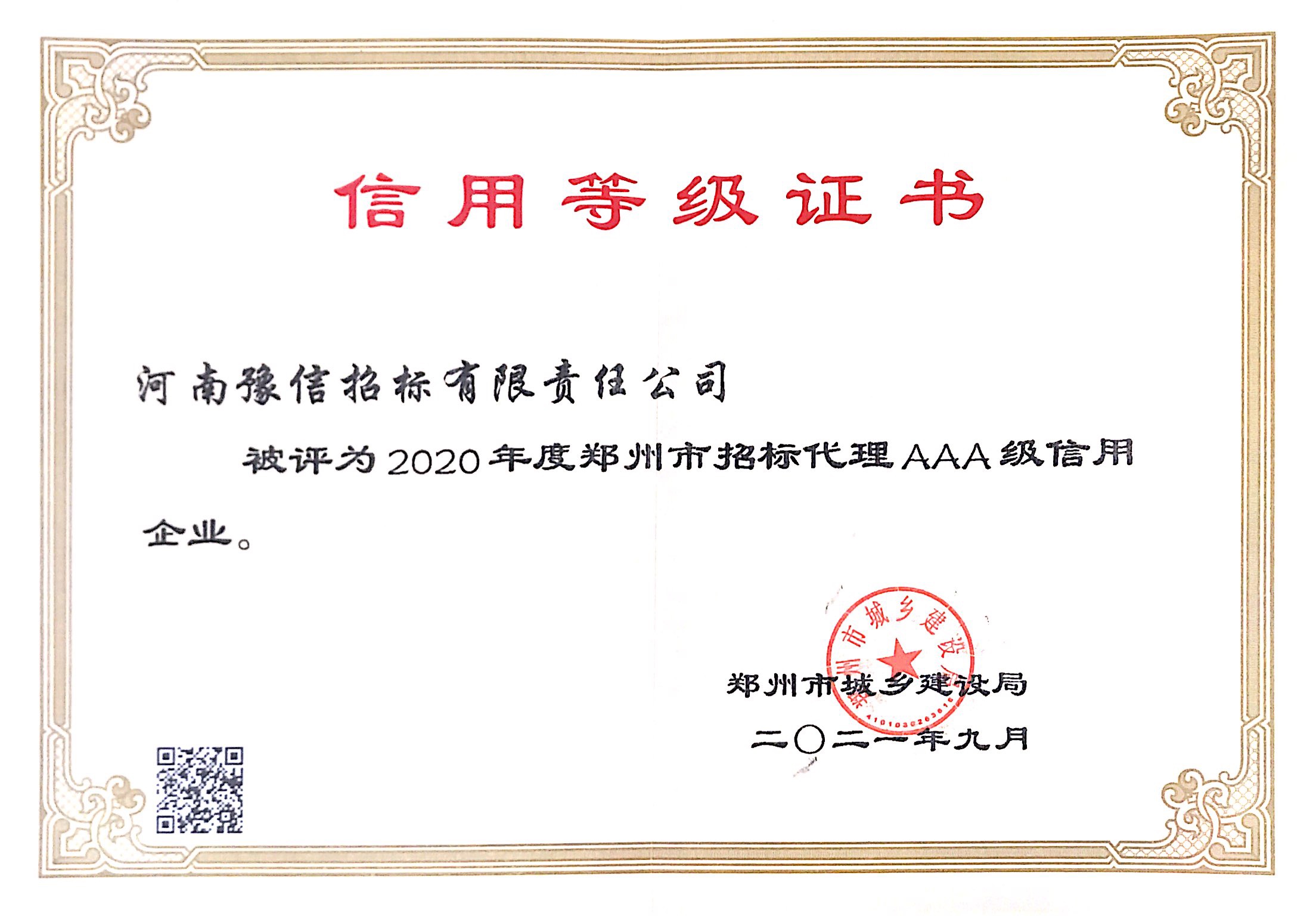 2017年度河南省建設(shè)工程招標(biāo)代理誠實(shí)守信單位 -