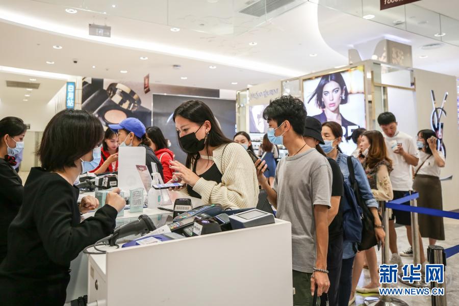 10月27日,消費(fèi)者在海南省??谑腥赵聫V場免稅店選購商品。新華社記者 張麗蕓攝