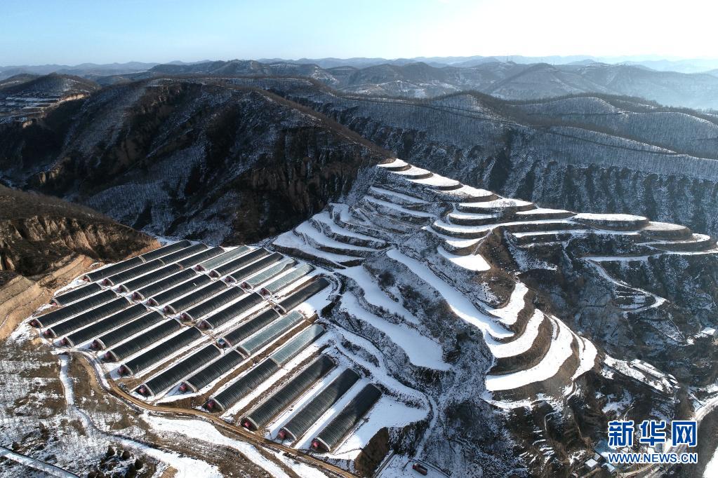 這是2020年1月20日拍攝的延安市寶塔區(qū)青化砭鎮(zhèn)梁村溫室大棚(無人機(jī)照片)。新華社記者 張博文 攝