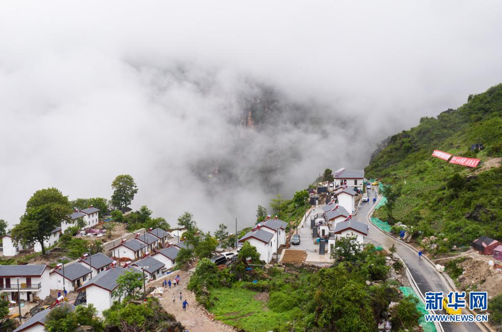2020年6月30日,一輛客運(yùn)面包車行駛在四川涼山州布拖縣阿布洛哈村新完工的村道上(無人機(jī)照片)。新華社記者 江宏景 攝