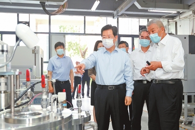 樓陽生走進(jìn)河南省資源與材料工業(yè)技術(shù)研究院、納米光機(jī)電與生物醫(yī)學(xué)工程實(shí)驗(yàn)室,參觀研究成果展,了解技術(shù)產(chǎn)品創(chuàng)新、科研團(tuán)隊(duì)建設(shè)、研發(fā)平臺(tái)運(yùn)行、成果轉(zhuǎn)化等情況。得知研究院準(zhǔn)備以靶材料研究申請(qǐng)國家級(jí)創(chuàng)新平臺(tái),樓陽生表示省委、省政府將全力支持,指出要把創(chuàng)新鏈、產(chǎn)業(yè)鏈融合起來,推進(jìn)科研成果產(chǎn)業(yè)化。樓陽生強(qiáng)調(diào),要把現(xiàn)有的科研資源進(jìn)一步整合重組,凝練一流課題,搭建一流平臺(tái),多出一流成果。