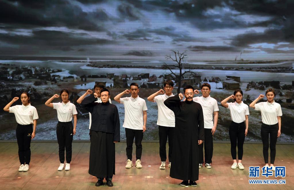 2021年4月20日,在電視劇《覺醒年代》主創(chuàng)團(tuán)隊(duì)走進(jìn)北大活動中,劇中陳獨(dú)秀扮演者于和偉(前左)、李大釗扮演者張桐(前右)與北大學(xué)生同臺演出。新華社記者 任超 攝