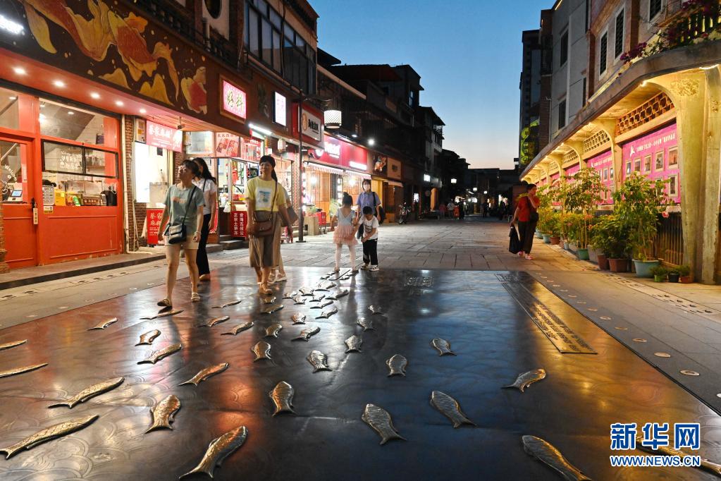游客在“微改造”后的泉州市金魚巷游玩(7月8日攝)。新華社記者 林善傳 攝