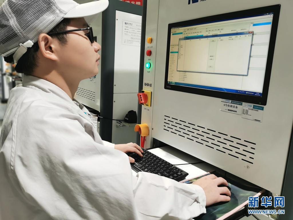 7月20日,在廣州廣汽埃安新能源汽車有限公司動力電池車間,電池支持工程師周林在調試動力電池檢測設備。新華社發(fā)