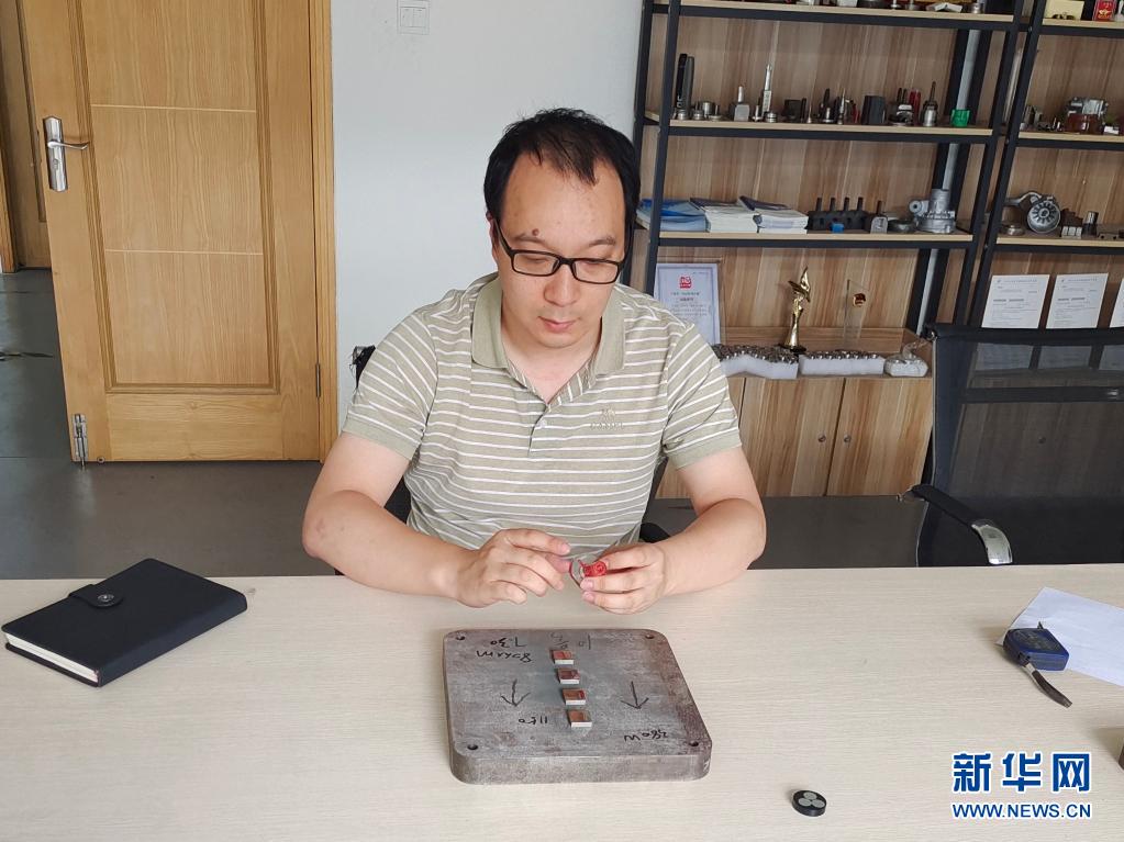 8月2日,在浙江省寧波市北侖區(qū)寧波經濟技術開發(fā)區(qū)科技創(chuàng)業(yè)園,匠心快速成型技術有限公司總經理錢濱在查看樣品質量。新華社發(fā)