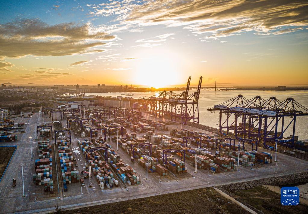 這是5月26日在海南洋浦經(jīng)濟(jì)開發(fā)區(qū)拍攝的洋浦國(guó)際集裝箱碼頭(無人機(jī)照片)。新華社記者 蒲曉旭 攝