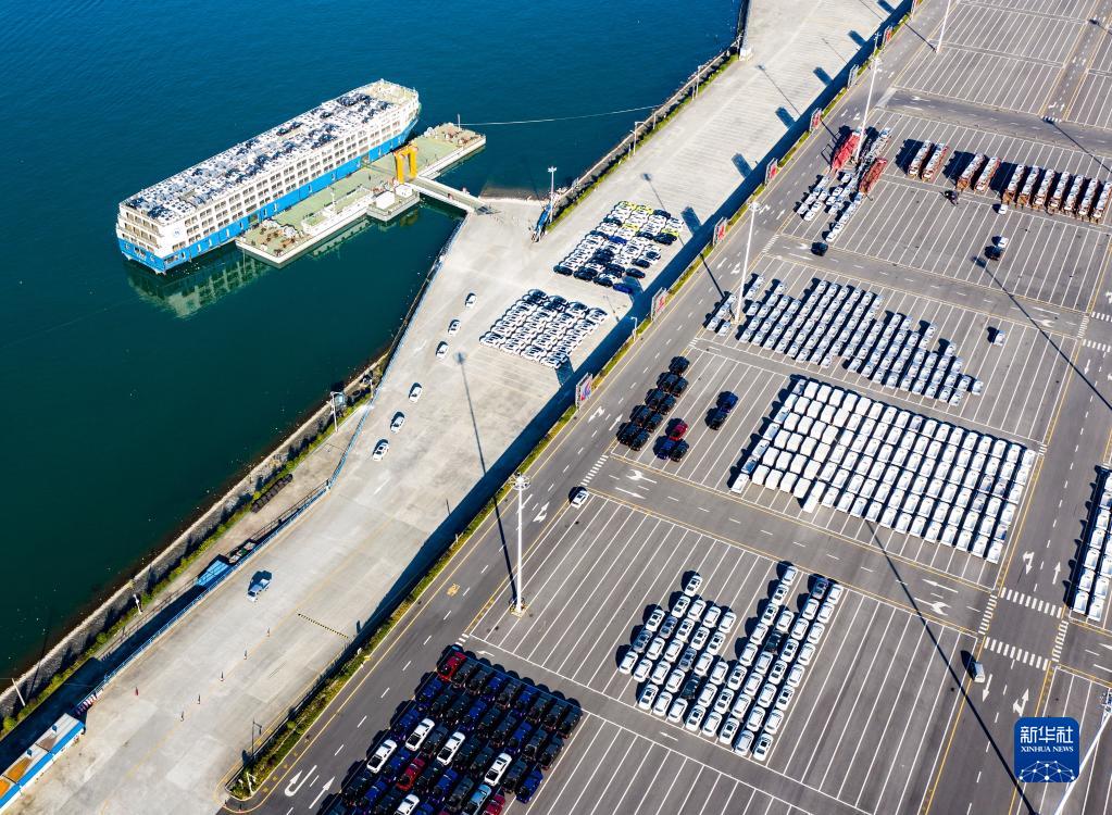 這是三峽庫(kù)區(qū)湖北省宜昌市秭歸縣秭歸港車輛分撥轉(zhuǎn)運(yùn)現(xiàn)場(chǎng)(2020年11月13日攝,無人機(jī)照片)。新華社發(fā)(鄭家裕 攝)