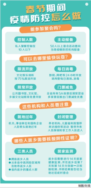 省衛(wèi)健委副主任張若石介紹,近日,省疫情防控指揮部就進(jìn)一步做好當(dāng)前新冠肺炎疫情防控工作、特別是冬春季農(nóng)村地區(qū)疫情防控下發(fā)通知,要求各地激活疫情應(yīng)急指揮體系,堅持24小時值班值守,嚴(yán)格執(zhí)行“日報告”“零報告”制度。要求減少大型聚集性活動,減少聚餐,減少人員流動。50人以上活動要制定防控方案,嚴(yán)格落實防控措施。文化娛樂場所按75%限流開放,影院、網(wǎng)吧等24小時開放場所要每日清場、消毒。私人聚餐控制在10人以下,50人以上宴會活動要向當(dāng)?shù)匾咔榉揽貦C(jī)構(gòu)報備。機(jī)關(guān)、事業(yè)單位和國有企業(yè)人員帶頭就地過年。