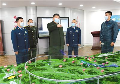 ????中華民族傳統(tǒng)節(jié)日春節(jié)即將來(lái)臨之際,中共中央總書(shū)記、國(guó)家主席、中央軍委主席習(xí)近平2月4日視察空軍航空兵某師,看望慰問(wèn)部隊(duì)官兵,代表黨中央和中央軍委,向全體人民解放軍指戰(zhàn)員、武警部隊(duì)官兵、軍隊(duì)文職人員、民兵預(yù)備役人員致以誠(chéng)摯問(wèn)候和新春祝福。這是習(xí)近平到某飛行大隊(duì)空勤樓飛行準(zhǔn)備室,察看飛行技術(shù)研究情況。