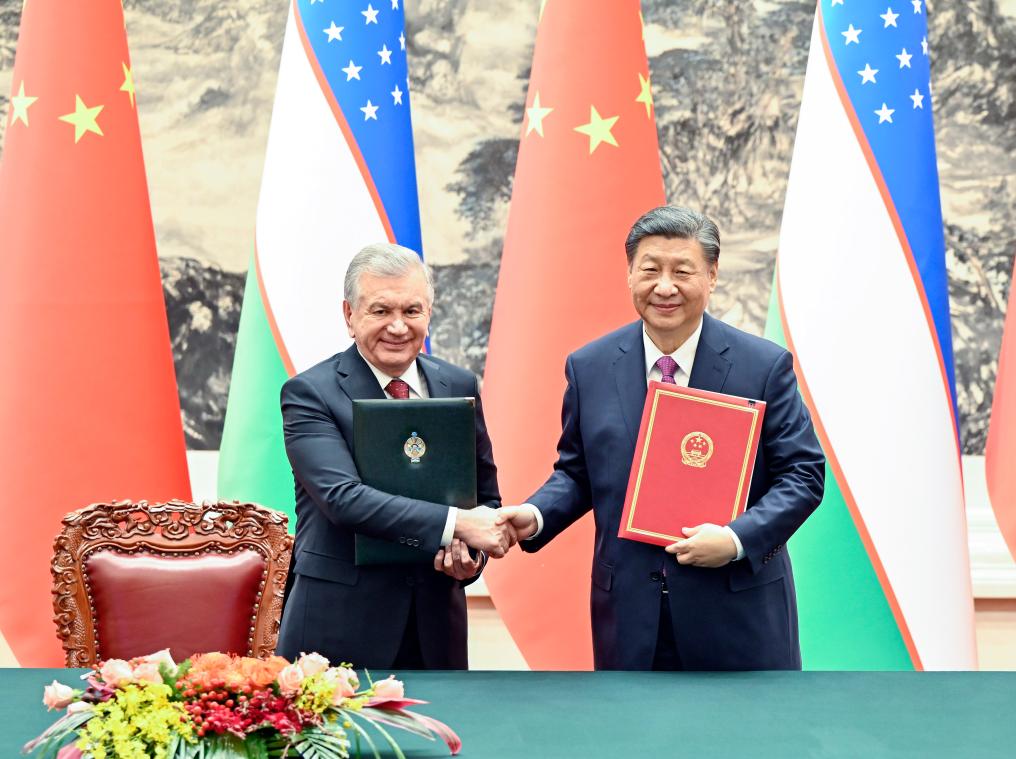 ??1月24日下午,國家主席習近平在北京人民大會堂同烏茲別克斯坦總統(tǒng)米爾濟約耶夫舉行會談。會談后,兩國元首簽署并發(fā)表了《中華人民共和國和烏茲別克斯坦共和國關(guān)于新時代全天候全面戰(zhàn)略伙伴關(guān)系的聯(lián)合聲明》。