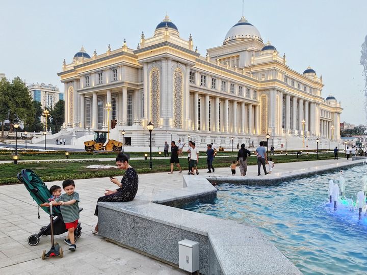 ??在總統(tǒng)府正門前平臺駐足,拉赫蒙總統(tǒng)指向不遠(yuǎn)處中國援建的議會大樓和政府大樓,告訴習(xí)近平主席:“議會大樓前廣場已成為市民們休閑避暑的好去處,是杜尚別的新打卡地。”
