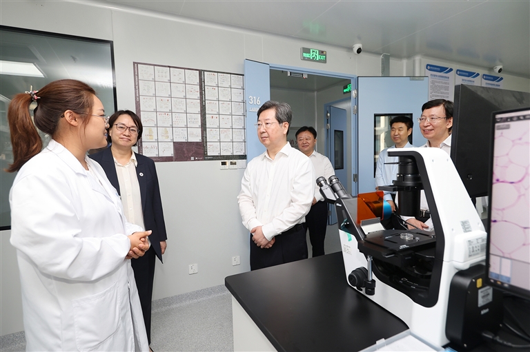 樓陽生到鄭州大學(xué)宣講黨的二十屆三中全會精神 堅定不移推進全面深化改革 加快在中原大地起高峰建高地 八月五日,省委書記樓陽生到天健先進生物醫(yī)學(xué)實驗室,調(diào)研技術(shù)創(chuàng)新和實驗室建設(shè)情況。本報記者 董亮 蔡迅翔 攝 8月5日,省委書記樓陽生到鄭州大學(xué)宣講黨的二十屆三中全會精神,調(diào)研科技創(chuàng)新、平臺建設(shè)、人才引育等情況。 在宣講報告會上,樓陽生圍繞深刻理解把握黨的二十屆三中全會的重大意義、深入學(xué)習(xí)領(lǐng)會習(xí)近平總書記在黨的二十屆三中全會上的重要講話精神、全面準確理解《中共中央關(guān)于進一步全面深化改革、推進中國式現(xiàn)代化的決定》提出的重大改革舉措等三個方面作了系統(tǒng)講解和深入闡釋。他指出,黨的二十屆三中全會是繼黨的十一屆三中全會、十八屆三中全會之后,又一具有劃時代意義的會議,是以中國式現(xiàn)代化全面推進強國建設(shè)、民族復(fù)興偉業(yè)征程上的一座里程碑,擘畫了進一步全面深化改革、推進中國式現(xiàn)代化的新藍圖,是我們黨在新時代新征程將改革進行到底的宣言書。全會取得的重要成果、作出的重大部署,充分彰顯了以習(xí)近平同志為核心的黨中央將改革進行到底的堅強決心和勇毅擔(dān)當(dāng),必將極大激勵廣大干部群眾凝心聚力、銳意進取,奮力在新征程上譜寫改革開放新篇章。 樓陽生指出,近年來,河南牢記習(xí)近平總書記“奮勇爭先、更加出彩”殷殷囑托,以前瞻30年的眼光想問題、作決策、抓發(fā)展,錨定“兩個確保”、實施“十大戰(zhàn)略”、推進“十大建設(shè)”,中國式現(xiàn)代化建設(shè)河南實踐邁出堅實步伐。特別是通過持之以恒抓好一批變革性、牽引性、標(biāo)志性舉措,河南經(jīng)濟發(fā)展正在發(fā)生動能之變、結(jié)構(gòu)之變、質(zhì)量之變、環(huán)境之變。要把思想和行動統(tǒng)一到黨的二十屆三中全會精神上來,以釘釘子精神抓好各項改革任務(wù)落實,以進一步全面深化改革開創(chuàng)中國式現(xiàn)代化建設(shè)河南實踐新局面。 樓陽生強調(diào),鄭州大學(xué)要堅定不移推進全面深化改革,錨定目標(biāo)、只爭朝夕、加壓奮進,著力抓好立德樹人,著力打造一流學(xué)科,著力建設(shè)高能級創(chuàng)新平臺,著力壯大人才隊伍,著力提升綜合實力,著力深化教育綜合改革,打造創(chuàng)新策源地、人才集聚地,加快起高峰、建高地,在“雙一流”建設(shè)中交出出彩答卷。 樓陽生還到國家超級計算鄭州中心、天健先進生物醫(yī)學(xué)實驗室、鄭州大學(xué)考古學(xué)學(xué)科建設(shè)創(chuàng)新中心調(diào)研,與科研人員交流學(xué)習(xí)黨的二十屆三中全會精神的體會和感悟。他強調(diào),要樹牢一切為了教學(xué)、一切為了科研的導(dǎo)向,持續(xù)深化教學(xué)科研、人才培養(yǎng)、成果評價等體制機制改革,不斷優(yōu)化用人單位小氣候,最大程度激發(fā)內(nèi)生動力。要堅持“頂天立地”,在加強基礎(chǔ)研究和原始創(chuàng)新上主動作為,在關(guān)鍵共性技術(shù)攻關(guān)上聚力突破,在促進成果轉(zhuǎn)化上積極探索,為建設(shè)國家創(chuàng)新高地和重要人才中心提供堅實支撐。 陳星、宋爭輝參加。(記者 馮蕓 馬濤)