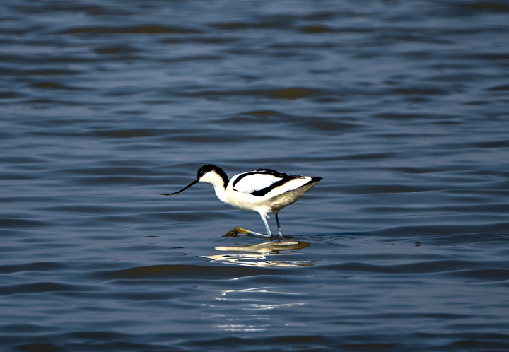 一只反嘴鷸在天津七里海濕地自然保護(hù)區(qū)內(nèi)休憩覓食。新華社記者 孫凡越 攝