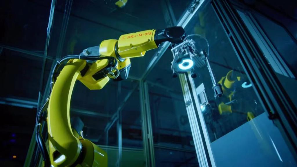??在九牧集團(tuán)精密注塑車間,數(shù)臺(tái)自動(dòng)搬運(yùn)機(jī)器人在車間與倉(cāng)庫(kù)間穿梭,注塑機(jī)臺(tái)上的機(jī)械臂搭載紅外攝像頭,自動(dòng)抓取物料。