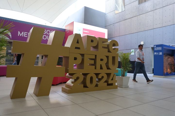 ??這是11月8日在秘魯利馬拍攝的2024年亞太經(jīng)濟合作組織(APEC)會議標識。新華社記者 許睿 攝