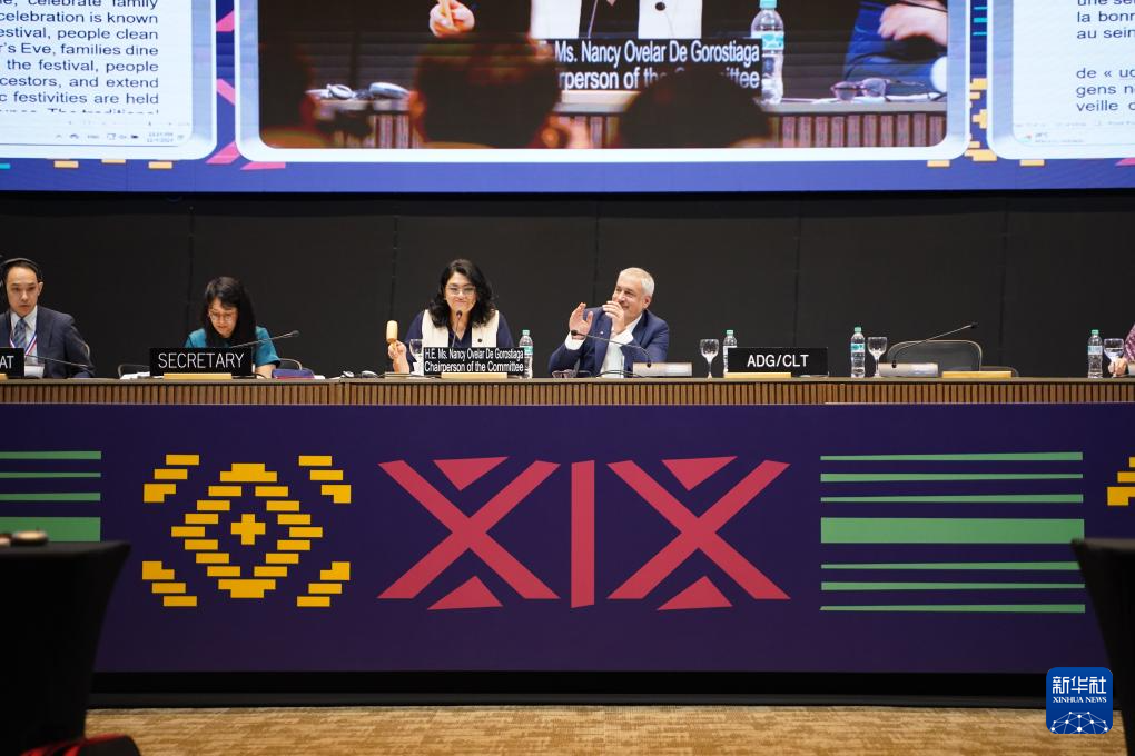 ??這是12月4日在巴拉圭亞松森拍攝的聯(lián)合國(guó)教科文組織保護(hù)非物質(zhì)文化遺產(chǎn)政府間委員會(huì)第19屆常會(huì)評(píng)審現(xiàn)場(chǎng)。新華社記者 朱雨博 攝